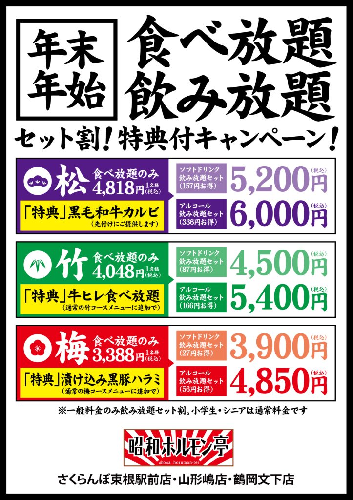 昭和ホルモン亭んご苑(さくらんぼ東根駅前店・山形嶋店・鶴岡文下店)では、